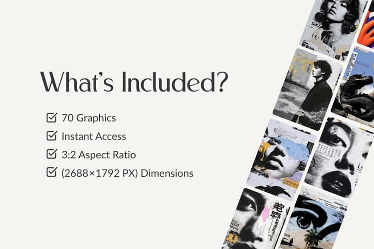 今天给大家分享73款日系复古潮流美学人像抽象艺术混合拼贴背景底纹PNG设计素材(70 Aesthetic Japanese Collage Backgrounds)能让你的设计沉浸于日式艺术的优雅之中。每张背景都将城市日式元素与现代拼贴美学进行了和谐融合。